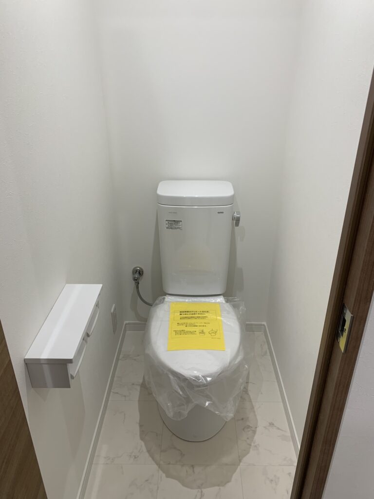 トイレは建具も新調し、クッションフロアは大理石調のものをセレクト。