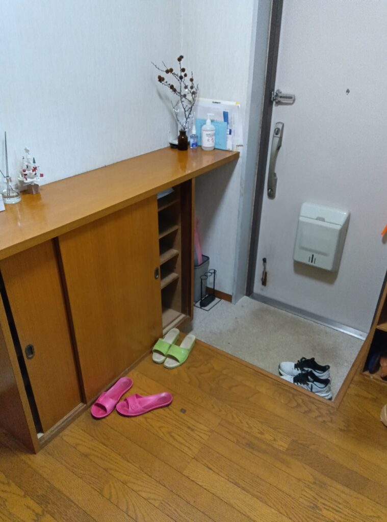 玄関は大きな据え置きの靴箱を取り払い、広々とした空間になりました。