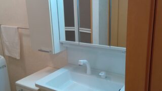 慣れ親しんだ形をそのままに 古くなった洗面化粧台の交換工事を行いました。洗面台横の棚も引き続き使いたい、とのことでサイズも使用感も変わらないものをチョイス。 新しく設置する前に水道管の掃除なども行い、気になっていたという … 続きを読む 【洗面所リフォーム】 M様邸