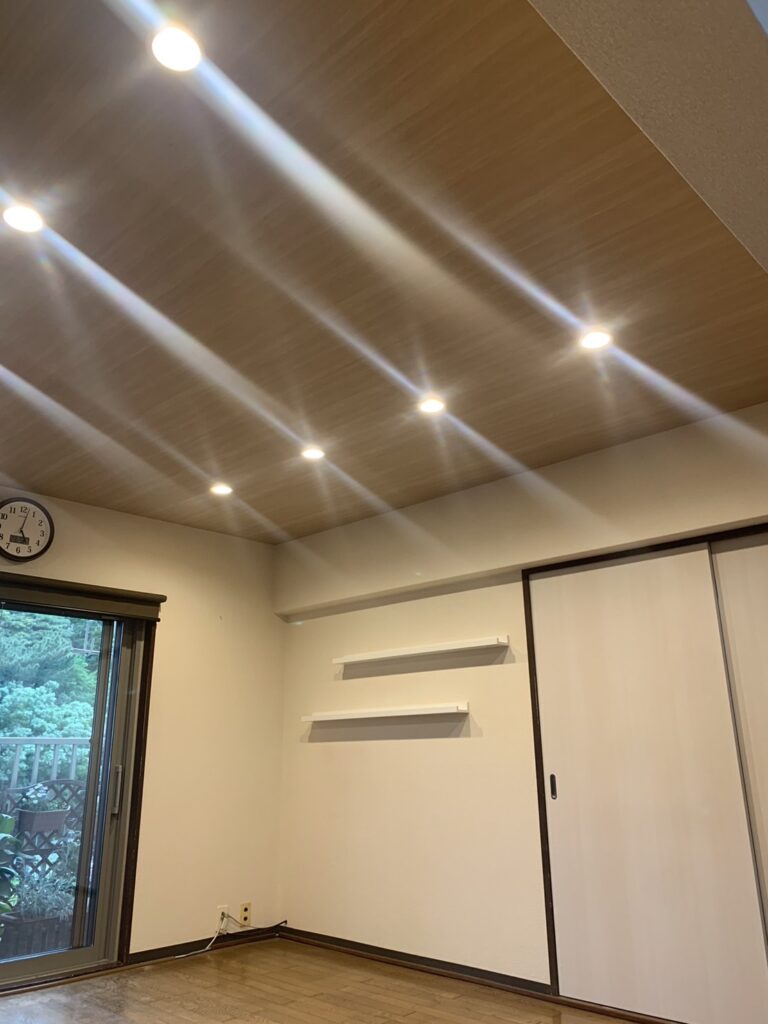 今回は鉄筋コンクリート造マンションのリビングルームに、ダウンライトを設置しました。