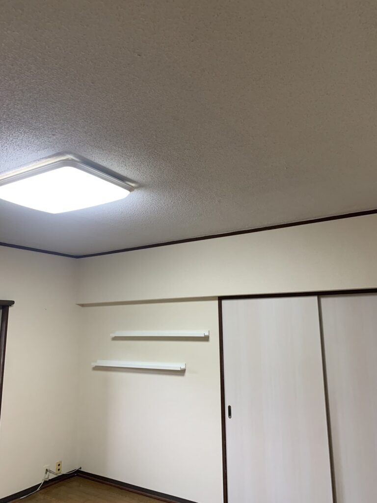 また、天井も従来の凹凸がある白い塗り壁から木目調のクロスへ張り替え。