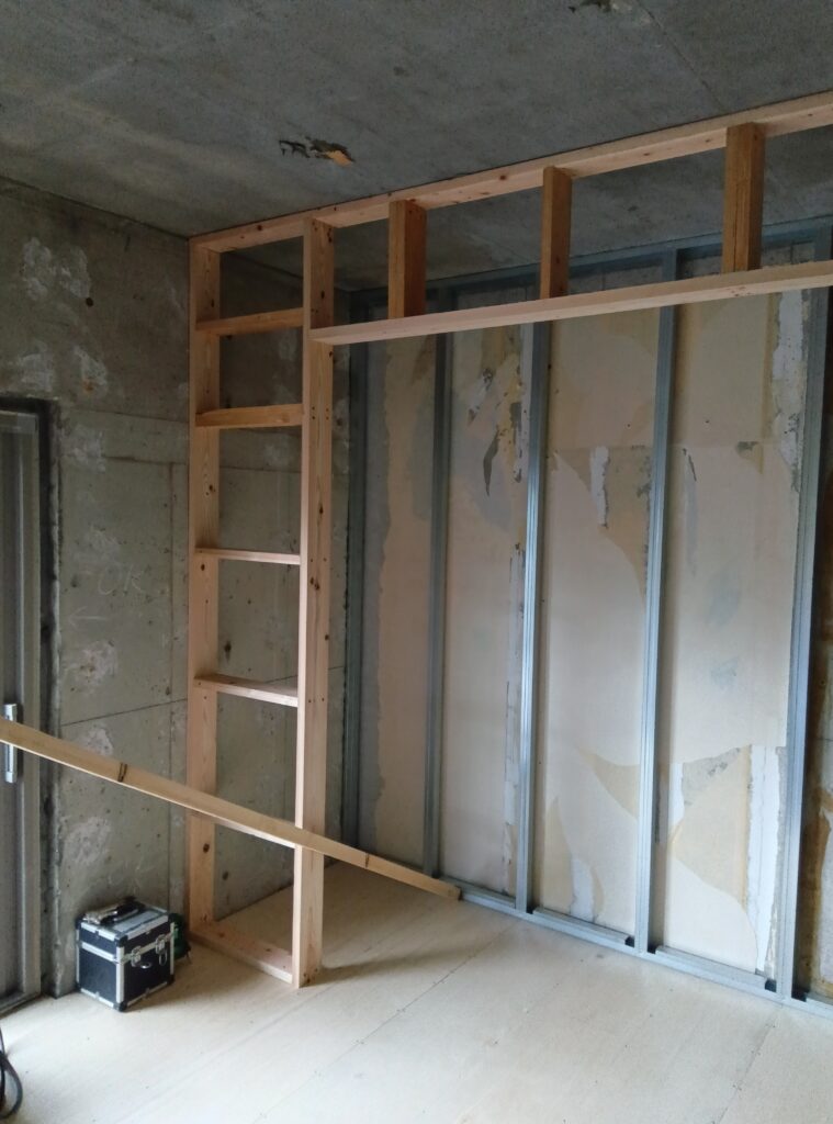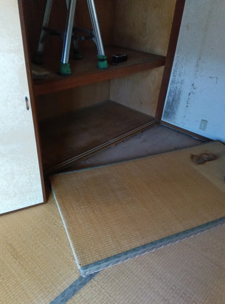 畳を外し、壁紙を剥がし、押入れの枠組みも撤去しました。