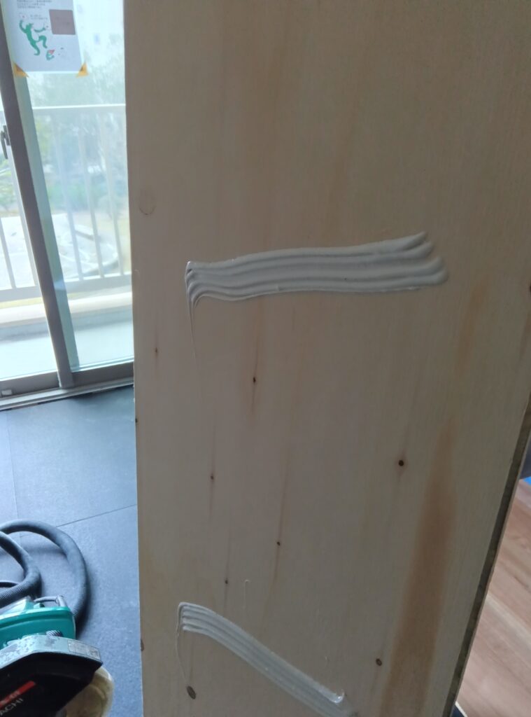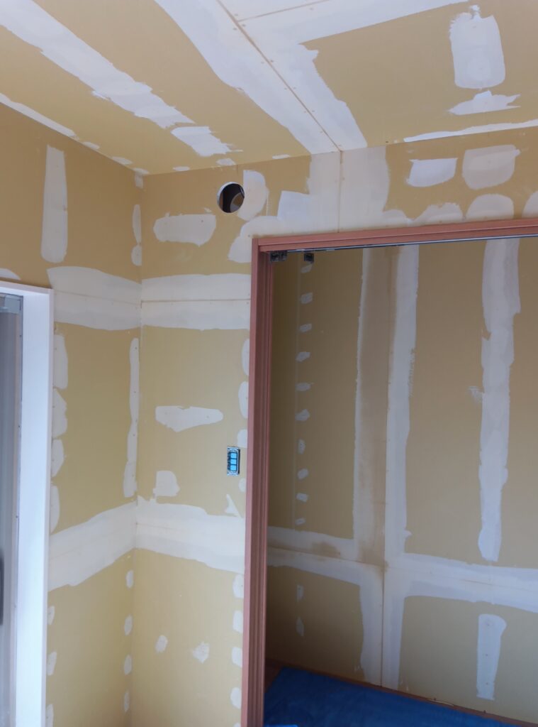 表面をなめらかにするためのパテ処理を行い、クロスを貼ります。