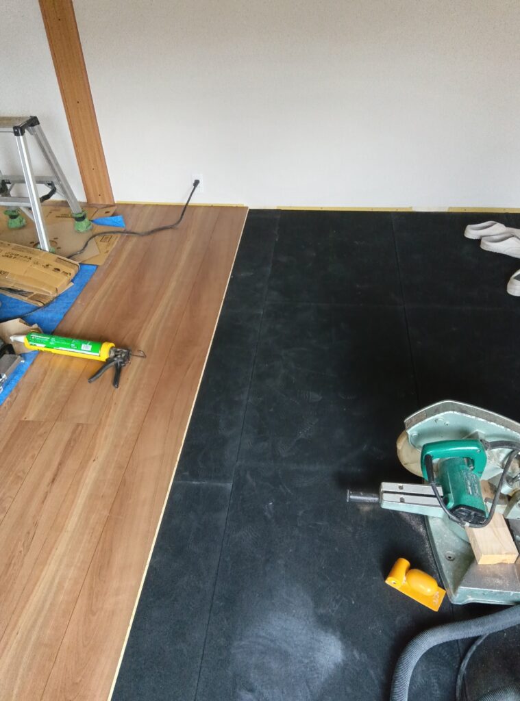 しっかりと敷き詰めたあと、フローリングを敷いていきます。