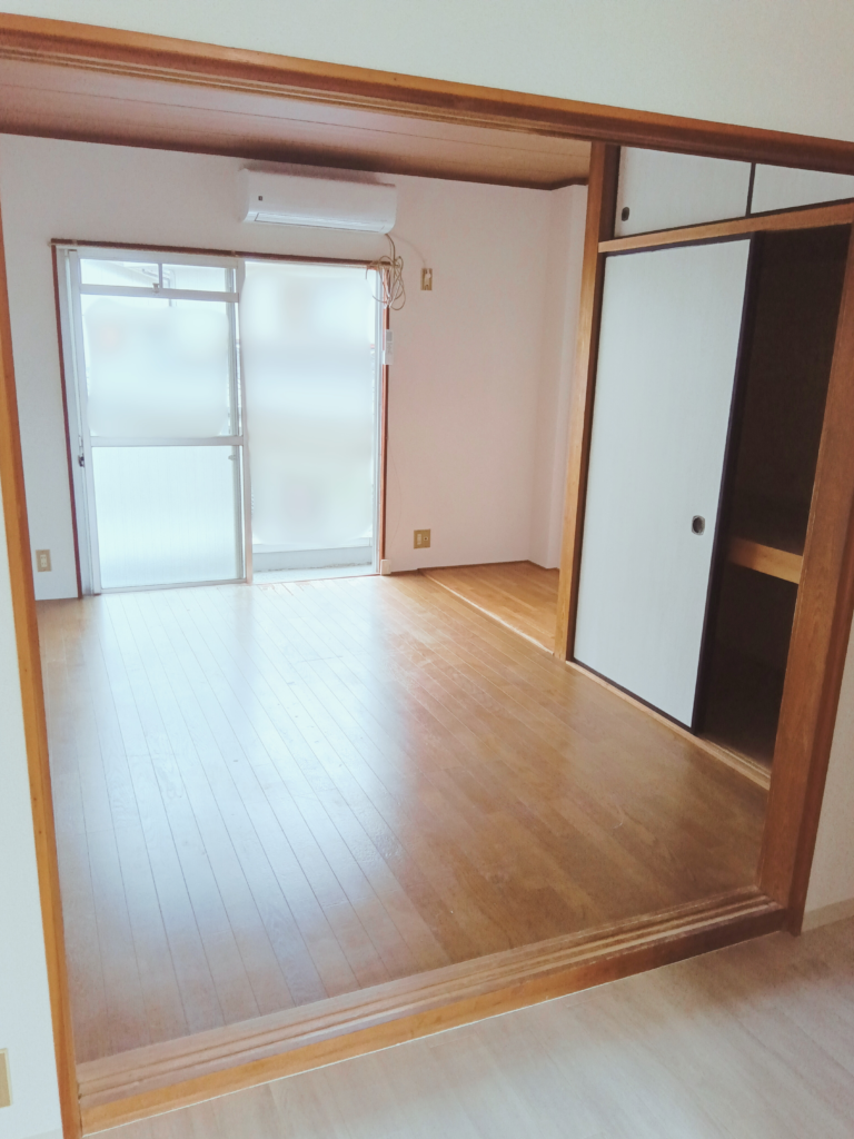 今回のお部屋は長期間使われていたこともあり、壁紙やクッションフロアの交換とハウスクリーニングだけではなく、水回りやエアコン、襖紙なども全て新調することになりました。