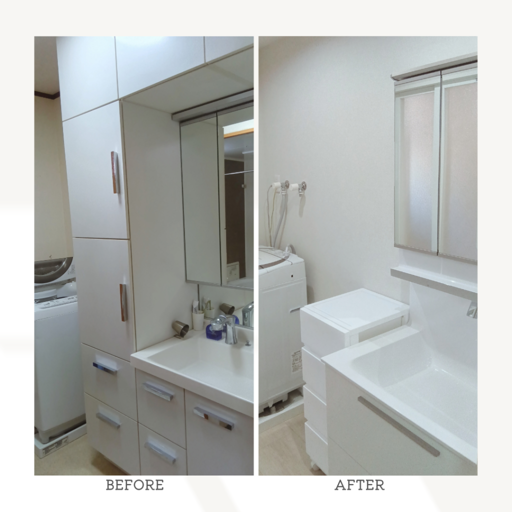コンパクトな化粧台にチェンジしたことで広々空間になりました。