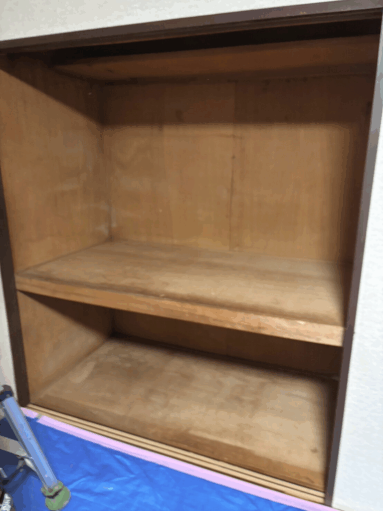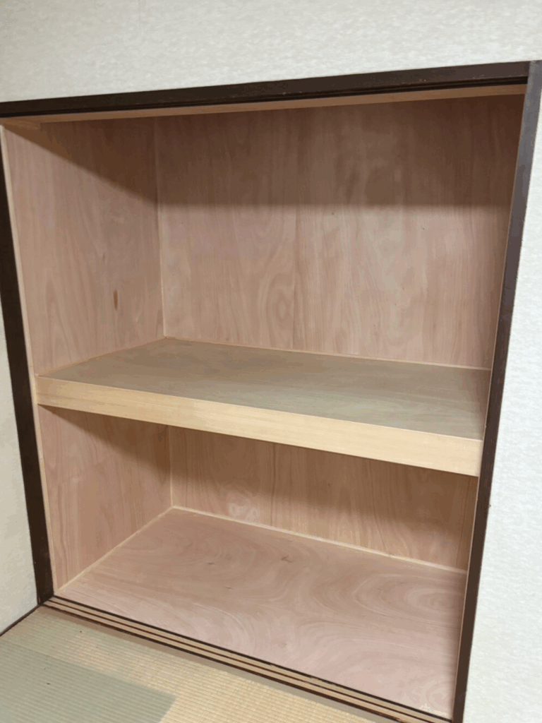 ベニヤ板を張り、中段も作り上げてまっさらな押入れが出来上がりました。