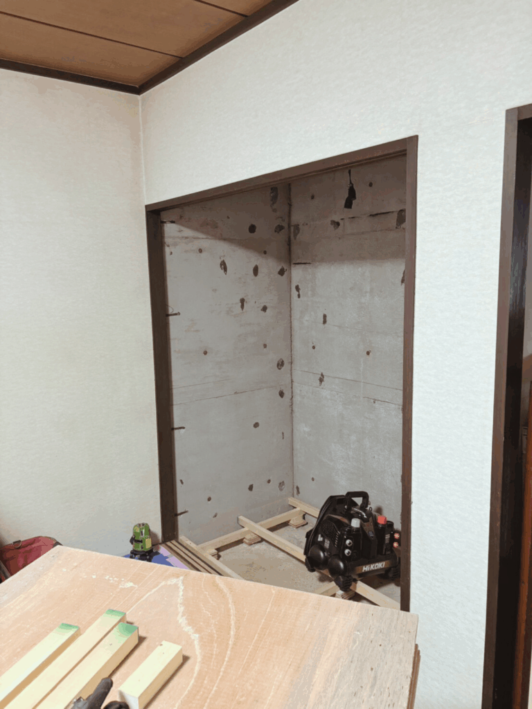 今回は、対症療法ではなく根本からカビ問題を解決するため、押入れを一度すべて解体して一から作り直すリフォームを行いました。
